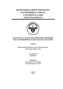 Erianti, Lisa (2017) TANGGUNG JAWAB PT POS INDONESIA (PERSERO) DALAM PENGIRIMAN PAKET BARANG DI JAMBI. S1 thesis, Universitas Jambi.