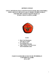 Simatupang, Risna Y (2017) UPAYA MENINGKATKAN AKTIVITAS DAN HASIL BELAJAR FISIKA SISWA DENGAN MENGGUNAKAN MODEL PEMBELAJARAN INKUIRI TIPE GUIDED INQUIRY DI KELAS XI MIA 2 SMAN 11 KOTA JAMBI. UPAYA MENINGKATKAN AKTIVITAS DAN HASIL BELAJAR FISIKA SISWA DENGAN MENGGUNAKAN MODEL PEMBELAJARAN INKUIRI TIPE GUIDED INQUIRY DI KELAS XI MIA 2 SMAN 11 KOTA JAMBI.
