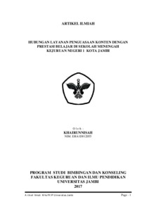 NISAH, KHAIRUN (2017) HUBUNGAN LAYANAN PENGUASAAN KONTEN DENGAN PRESTASI BELAJAR DI SEKOLAH MENENGAH KEJURUAN NEGERI 1 KOTA JAMBI. BK, 1 (1). pp. 1-15. ISSN --