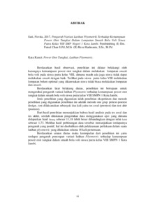ABSTRAK Sari, Novita, 2017. Pengaruh Variasi Latihan Plyometrik Terhadap Kemampuan Power Otot Tungkai Dalam Lompatan Smash Bola Voli Siswa Putra Kelas VIII SMP Negeri 1 Kota Jambi. Pembimbing (I) Drs. Faisal Chan S.Pd.,M.Si (II) Reza Hadinanta, S.Si., M.Pd Kata Kunci: Power Otot Tungkai, Latihan Plyometric. Berdasarkan hasil observasi, penelitian ini dilatar belakangi oleh kurangnya kemampuan power otot tungkai dalam melakukan lompatan smash bola voli pada siswa putra kelas VIII, dimana masih ada juga siswa tidak dapat melakukan smash dengan baik. Terlihat pada siswa putra kelas VIII melakukan lompatan belum optimal yang dikarenakan siswa tidak biasa melakukan lompatan dan smash. Berdasarkan latar belakang diatas, penelitian ini bertujuan untuk mengetahui pengaruh variasi latihan Plyometric terhadap kemampuan power otot tungkai dalam smash bola voli siswa putra kelas VIII SMPN 1 Kota Jambi. Jenis penelitian yang digunakan ialah penelitian eksperimen dan metode penelitian yang digunakan penelitian ini adalah metode one grup pretest-posttest design.. test dilaksanakan sebanyak dua kali yaitu tes awal (preetest) dan test ahir (posttest). Dari hasil penelitian menunjukkan bahwa hasil analisis pada tes awal dan tes akhir, setelah dilakukan pengolahan data menggunakan uji-t yang dimana didapatkan hasil thitung sebesar 11,18 lebih besar dibandingkan dengan nilai ttabel sebesar 1,73. Melihat hasil perhitungan data tersebut menunjukkan terdapatnya pengaruh yang positif, hal ini disebabkan oleh pelaksanaan perlakuan dalam suatu latihan plyometric yang dilakukan selama 18 kali pertemuan. Berdasarkan uraian diatas maka kesimpulan dari penelitian ini yaitu terdapat pengaruh penerapan variasi latihan Plyometric terhadap kemampuan power otot tungkai dalam smash bola voli siswa putra kelas VIII SMPN 1 Kota Jambi.