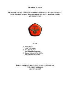 RIYANA, DHIKA PENGEMBANGAN E-MODUL BERBASIS 3D PAGEFLIP PROFESSIONAL PADA MATERI MODEL ATOM HIDROGEN MATA KULIAH FISIKA ATOM DAN INTI. PENGEMBANGAN E-MODUL BERBASIS 3D PAGEFLIP PROFESSIONAL PADA MATERI MODEL ATOM HIDROGEN MATA KULIAH FISIKA ATOM DAN INTI. (In Press)