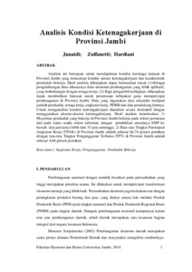 Junaidi, Junaidi and Zulfanetti, Zulfanetti and Hardiani, Hardiani (2014) Analisis Kondisi Ketenagakerjaan di Provinsi Jambi. Fakultas Ekonomi dan Bisnis Universitas Jambi. (Unpublished)