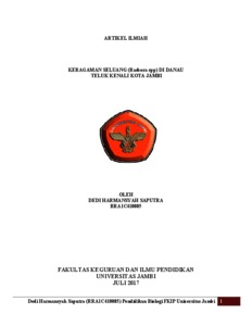 ABSTRAK Harmansyah, Dedi. 2017. Keragaman Seluang (Rasbora spp) Di Danau Teluk Kenali Kota Jambi : Skripsi, Jurusan Pendidikan Matematika dan Ilmu Pengetahuan Alam, FKIP Universitas Jambi, Pembimbing: (1) Dr. Tedjo Sukmono, S.Si, M.Si., (2) Ali Sadikin, S.Pd.I, M.Pd. Kata Kunci: Rasbora, Keragaman, Danau Teluk Kenali. Danau Teluk Kenali berada di Kelurahan Teluk Kenali Kecamatan Telanaipura Kota Jambi, memiliki luas 30 Ha. Di Danau Teluk Kenali terdapat berbagai spesies ikan salah satunya adalah ikan seluang (Rasbora). Ikan seluang salah satu ikan yang mempunyai nilai ekonomi yang tinggi dari pada ikan lainnya yang ada di Danau Teluk Kenali. Penelitian ini bertujuan untuk mengetahui Keragaman dan Deskripsi ikan Seluang di Danau Teluk Kenali Kota Jambi. Penelitian ini merupakan penelitian eksploratif, yaitu pengambilan sampel ikan seluang dilakukan secara langsung di lapangan pada setiap stasiun dan juga wawancara kepada masyarakat setempat untuk memperoleh data. Alat yang digunakan dalam penelitian adalah perahu, jaring insang, dan tangkul. Sedangkan bahan yang digunakan dalam penelitian adalah ikan, dan alkohol 70% untuk mengawetkan sampel. Berdasarkan hasil penelitian sebanyak 191 ekor ikan seluang dari 3 spesies yang ditemukan di setiap stasiun. Spesies ikan seluang yang berhasil identifikasi yaitu Rasbora sumatrana, Rasbora trilineata, dan Rasbora dusonensis. Rasbora sumatrana yang paling banyak ditangkap dengan jumlah 115 individu, Rasbora trilineata berjumlah 46 individu dan Rasbora dusonensis yang berjumlah 30 individu. Populasi ikan ini sangat sidikit, hal ini disebabkan oleh faktor lingkungan, eksploitasi, habitat dan terancam. Ikan seluang (Rasbora) secara garis besar memiliki mulut tipe superior yaitu tipe mulut yang bagian rahang bawahnya sedikit lebih panjang dari rahang bagian atas. Moncong berada di tengah-tengah tubuh ikan dengan kemiringan mulut kearah bagian ventral tubuh dan memiliki ukuran bola mata yang relatip cukup besar.