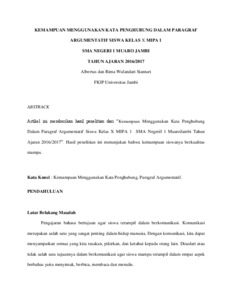 SIANTURI, RIMA WULANDARI KEMAMPUAN MENGGUNAKAN KATA PENGHUBUNG DALAM PARAGRAF ARGUMENTATIF SISWA KELAS X MIPA 1 SMA NEGERI 1 MUARO JAMBI TAHUN AJARAN 2016/2017. Jurnal Penelitian Universitas Jambi. ISSN 0852-8349