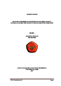 RONAL IRAWAN, AGI NILAI-NILAI PENDIDIKAN KARAKTER DALAM CERITA RAKYAT PANGKALAN JAMBU DESA BUNGO TANJUNG KABUPATEN MERANGIN. NILAI-NILAI PENDIDIKAN KARAKTER DALAM CERITA RAKYAT PANGKALAN JAMBU DESA BUNGO TANJUNG KABUPATEN MERANGIN. (Submitted)