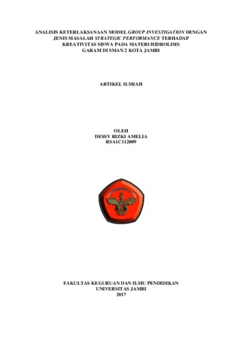 Amelia, Dessy Rizki ANALISIS KETERLAKSANAAN MODEL GROUP INVESTIGATION DENGAN JENIS MASALAH STRATEGIC PERFORMANCE TERHADAP KREATIVITAS SISWA PADA MATERI HIDROLISIS GARAM DI SMAN 2 KOTA JAMBI. Jurnal Pendidikan Kimia.