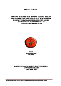 SKRINING BAKTERI DARI TANDAN KOSONG KELAPA SAWIT YANG BERASAL DARI PT. SUNGAI BAHAR PASIFIK UTAMA MARO SEBO KABUPATEN MUARO JAMBI