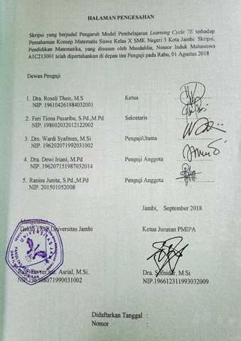 musdahlia, musdahlia Pengaruh model pembelajaran learning cycle 7e terhadap pemahaman konsep matematis siswa kelas x smk negeri 3 kota jambi. UNJA.