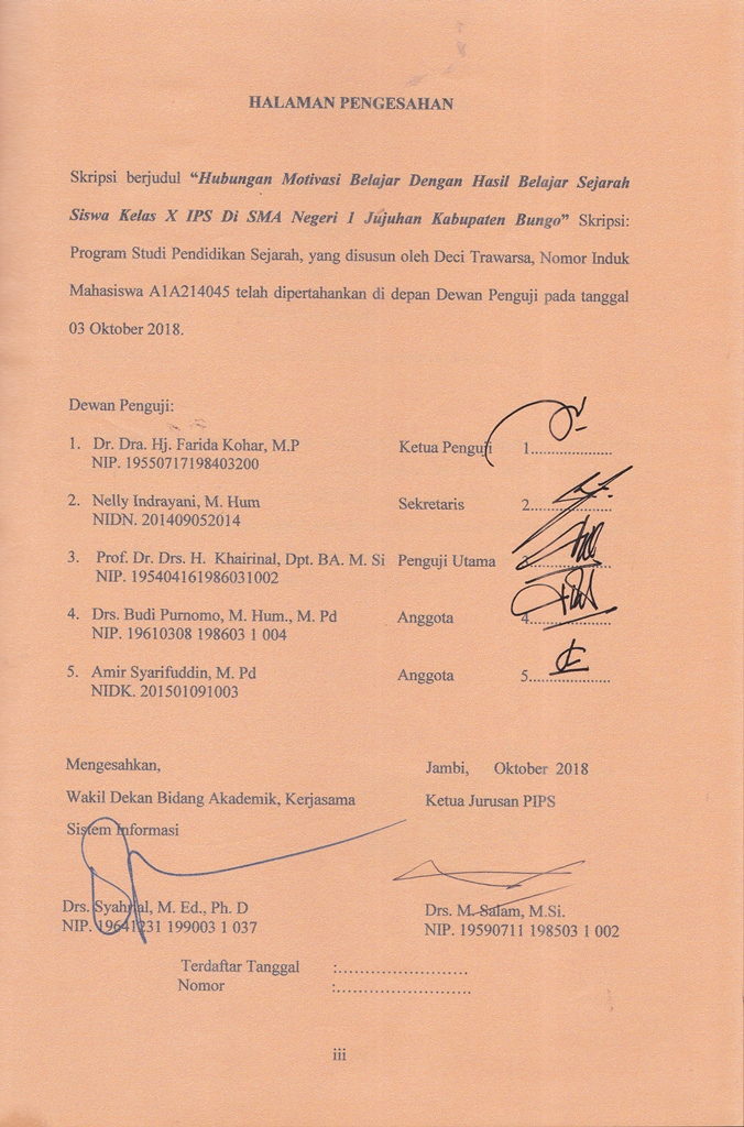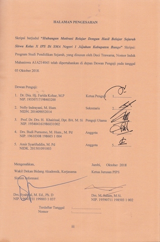 HUBUNGAN MOTIVASI BELAJAR DENGAN HASIL BELAJAR SEJARAH SISWA KELAS X IPS DI SMA NEGERI 1 JUJUHAN KABUPATEN BUNGO