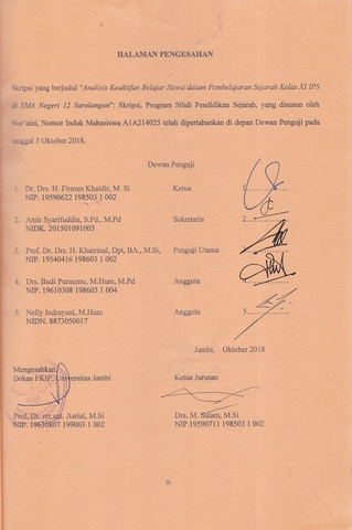 ANALISIS KEAKTIFAN BELAJAR SISWA DALAM PEMBELAJARAN SEJARAH KELAS XI IPS DI SMA NEGERI 12 SAROLANGUN