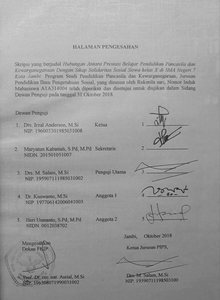 ABSTRAK Sari, Rukmila: 2018. Hubungan Antara Prestasi Belajar Pendidikan Pancasila dan Kewarganegaraan Dengan Sikap Solidaritas Sosial Siswa di SMA Negeri 7 Kota Jambi. Skripsi. Program Studi Pendidikan Pancasila dan Kewarganegaraan. Jurusan Pendidikan Ilmu Pengetahuan Sosial. Pembimbing I Drs. Irzal Anderson, M.Si . Pembimbing II Maryatun Kabatiah,S.Pd, M. Pd. Kata-kata Kunci: Prestasi Belajar Pendidikan Pancasila dan Kewarganegaraan, Sikap Solidaritas Sosial Siswa pendidikan pancasila dan kewarganegaraan merupakan mata pelajaran yang dirancang untuk menjadikan siswa sebagai warga negara yang peduli terhadap lingkungan sekitarnya. Sikap solidaritas sosial merupakan salah satu sikap yang ada dalam pembelajaran PPKn. Hal ini akan berhubungan dengan prestasi belajar PPKn karena didalam prestasi belajar dapat melihat bagaimana penguasaan siswa terhadap pengetahuan, sikap dan ketrampilan mata pelajaran PPKn. Penelitian ini bertujuan untung mengetahui Hubungan Antara Prestasi Belajar Pendidikan Pancasila dan Kewarganegaraan dengan Sikap Solidaritas Sosial Siswa di SMA Negeri 7 Kota Jambi. Penelitian ini merupakan penelitian Korelasional, dilaksanakan di SMA Negeri 7 Kota Jambi pada siswa kelas X IPS dan IPA dengan sampel berjumlah 64 siswa. Alat pengumpulan data yang digunakan ialah angket. Angket tersebut memiliki beberapa item pernyataan, untuk sikap solidaritas sosial terdiri dari 21 item untuk dilakukan analisis dengan menggunakan aplikasi Microsoft Excel 2007 dan SPSS 16.0 Dari hasil perhitungan yang telah dilakukan, maka diperoleh data: 1) prestasi belajar PPKn kelas X IPS di SMA Negeri 7 kota Jambi termasuk dalam katagori cukup, dengan nilai 61-65 mencapai persentase 23,43% dan dengan nilai 51-55 mencapai persentase 23,43%. 2) bahwa sikap solidaritas sosial siswa kelas X IPS dan IPA di SMA Negeri 7 Kota Jambi, termasuk dalam katagori tinggi, dengan nilai 66-87 mencapai persentase 69%. Hasil uji korelasi sederhana antara data prestasi belajar PPKn dengan sikap solidaritas sosial siswa didapat nilai korelasinya sebesar 0,760 atau berkatagori tinggi dan dari uji-t signifikan didapat nilainya sebesar thitung = 9.220 > ttabel = 1.999. Dari perhitungan tersebut maka terjawab hipotesisnya yaitu terdapat hubungan antara prestasi belajar PPKn dengan sikap solidaritas sosial siswa pada mata pelajaran PPKn kelas X di SMA Negeri 7 Kota Jambi. Di sarankan Kepada guru diharapkan dapat meningkatkan cara mengajarnya dengan menyeimbangkan pembelajaran kognitif dan afektif sehingga prestasi belajar siswa baik dan sikap solidaritas siswa sosial juga baik. Kepada siswa untuk dapat meningkatkan prestasi belajar PPKn karena secara tidak langsung dengan meningkatnya prestasi belajar PPKn dapat menumbuhkan sikap solidaritas sosial siswa.
