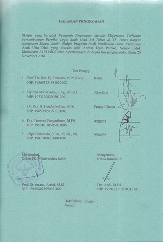 DYAN PERTIWI, ANNISA PENGARUH PENERAPAN METODE EKSPERIMEN TERHADAP PERKEMBANGAN BERPIKIR LOGIS ANAK USIA 5-6 TAHUN DI TK TUNAS BANGSA KABUPAEN MUARO JAMBI. JURNAL PENGARUH PENERAPAN METODE EKSPERIMEN TERHADAP PERKEMBANGAN BERPIKIR LOGIS ANAK USIA 5-6 TAHUN DI TK TUNAS BANGSA KABUPAEN MUARO JAMBI.