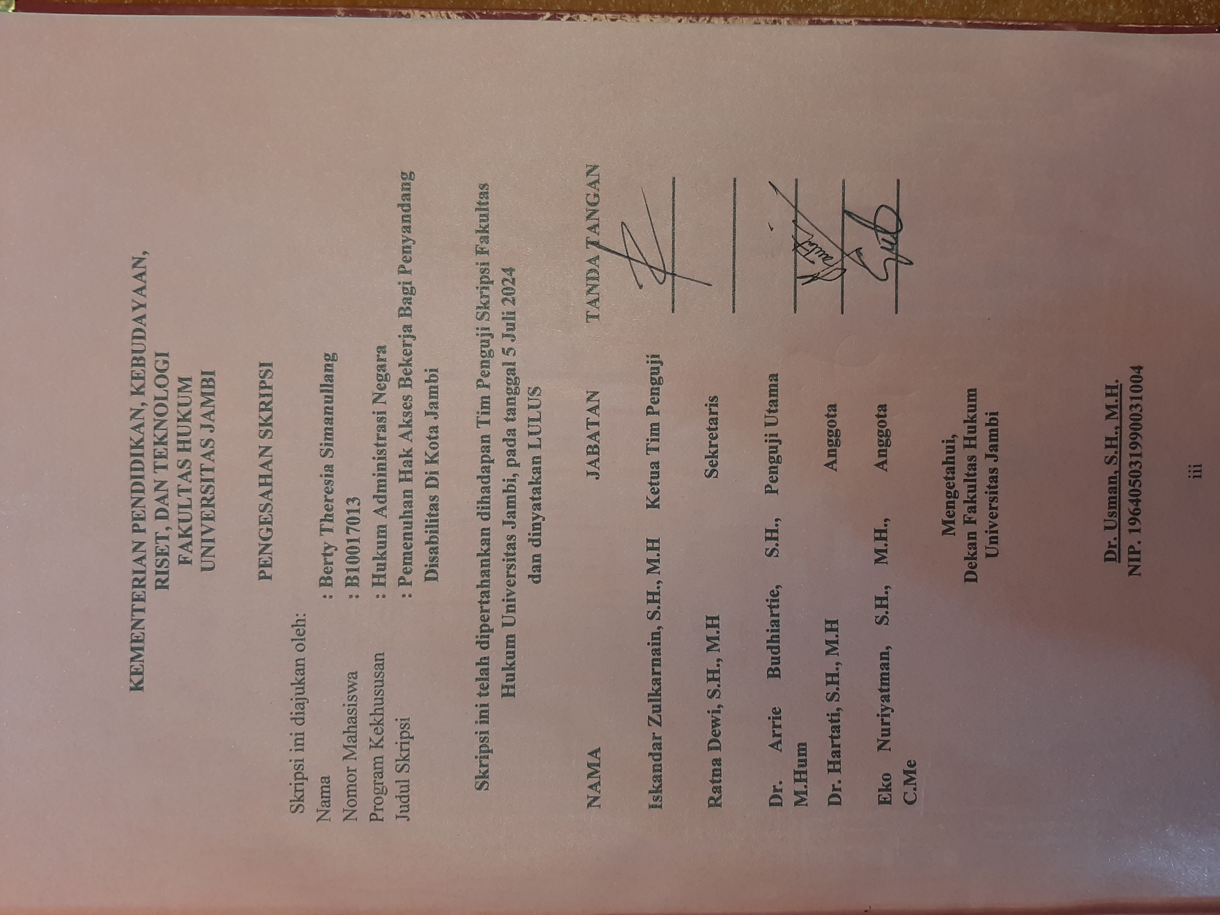 SIMANULLANG, BERTY THERESIA (2024) PEMENUHAN HAK AKSES BEKERJA BAGI PENYANDANG DISABILITAS DI KOTA JAMBI. S1 thesis, UNIVERSITAS JAMBI.