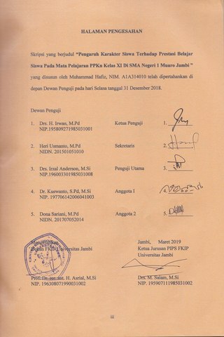 Hafiz, Muhammad PENGARUH KARAKTER SISWA TERHADAP PRESTASI BELAJAR SISWA PADA MATA PELAJARAN PPKN KELAS XI DI SMA NEGERI 1 MUARO JAMBI. JURNAL PENGARUH KARAKTER SISWA TERHADAP PRESTASI BELAJAR SISWA PADA MATA PELAJARAN PPKN KELAS XI DI SMA NEGERI 1 MUARO JAMBI.