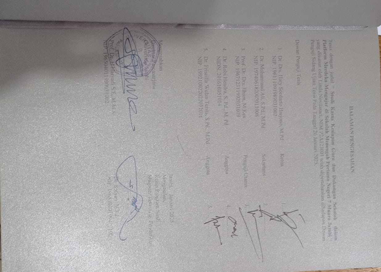 NOVITASARI, LINDA (2025) STUDI KASUS KESIAPAN GURU DAN DUKUNGAN SEKOLAH DALAM PLATFORM MERDEKA MENGAJAR DI SEKOLAH MENENGAH PERTAMA NEGERI 7 MUARO JAMBI. S2 thesis, Universitas Jambi.