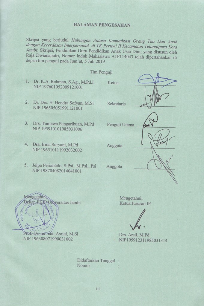 DWIANA PUTRI, RAJA HUBUNGAN ANTARA KOMUNIKASI ORANG TUA DAN ANAK DENGAN KECERDASAN INTERPERSONAL DI TK PERTIWI II KECAMATAN TELANAIPURA KOTA JAMBI. JURNAL HUBUNGAN ANTARA KOMUNIKASI ORANG TUA DAN ANAK DENGAN KECERDASAN INTERPERSONAL DI TK PERTIWI II KECAMATAN TELANAIPURA KOTA JAMBI.